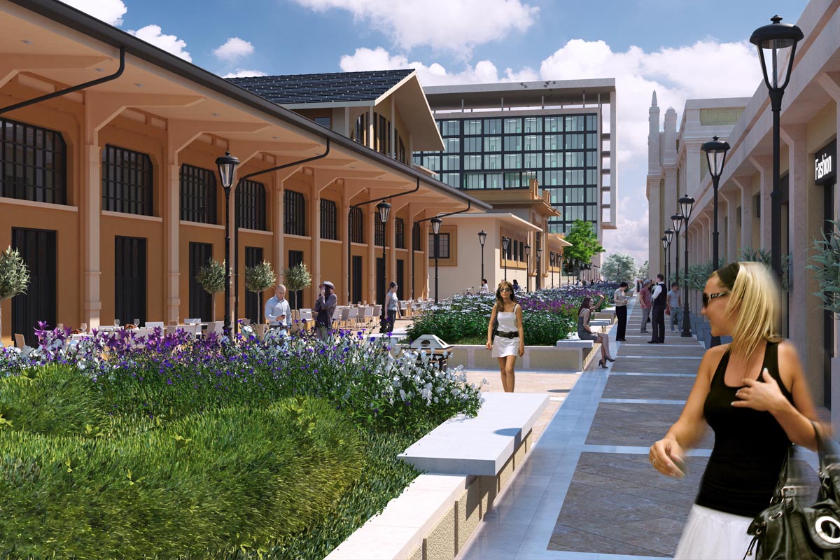 El proyecto se ha representado desde varios puntos de vista exteriores para obtener una visualización 3D completa observando varias zonas de la gran superficie y edificios destinados a distintos usos a través de imágenes en alta resolución realizadas con infografía 3D.